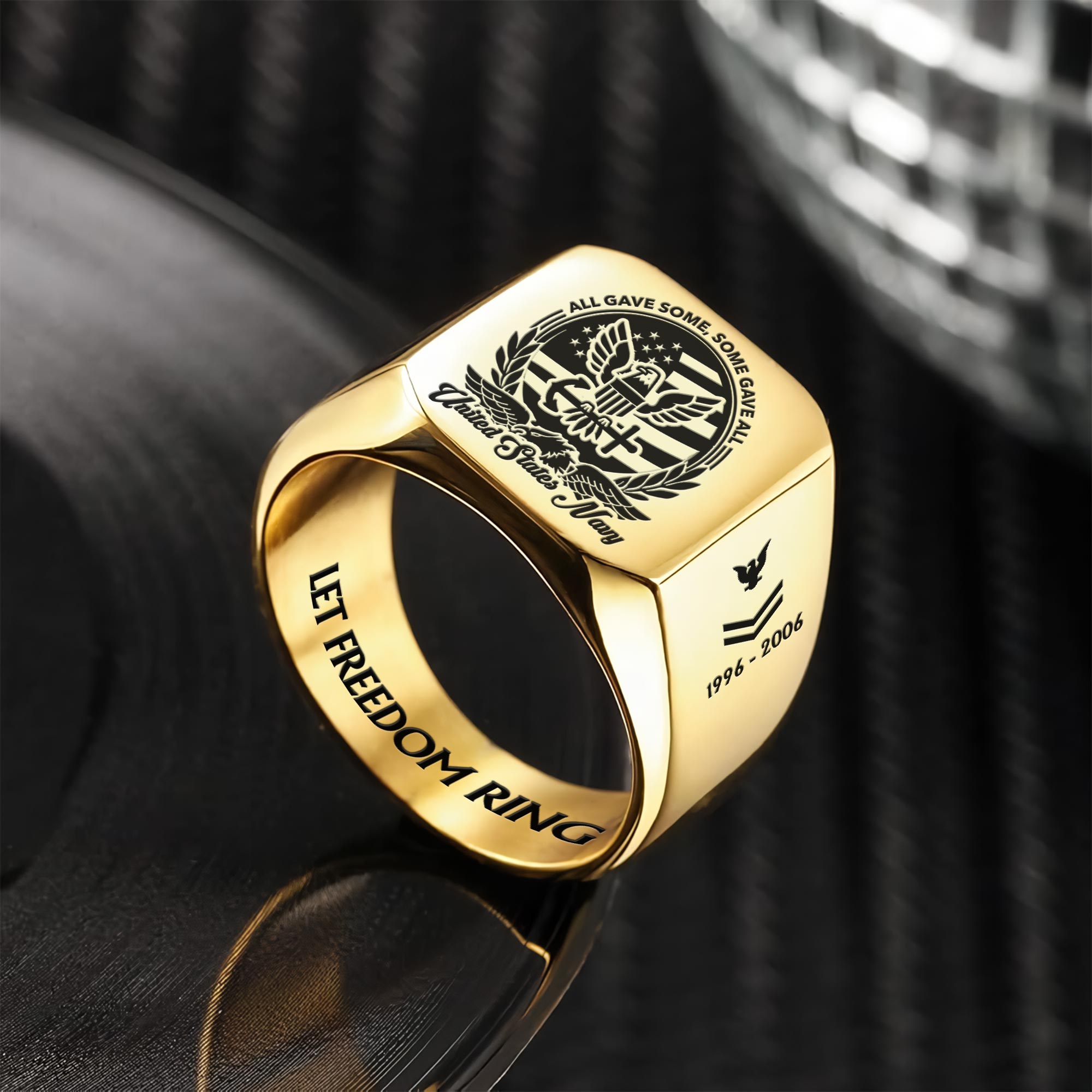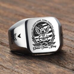 You’re enabled to customize your name, rank, rating, etc. to have them printed on the personalized engraved men’s ring. Make it uniquely yours by incorporating elements that celebrate your military identity and legacy.