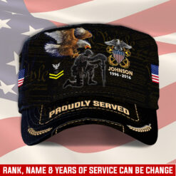 The option to customize with details like rank, name, and years of service adds a personal touch that sets this cap apart. It’s a thoughtful way to make it truly one-of-a-kind.