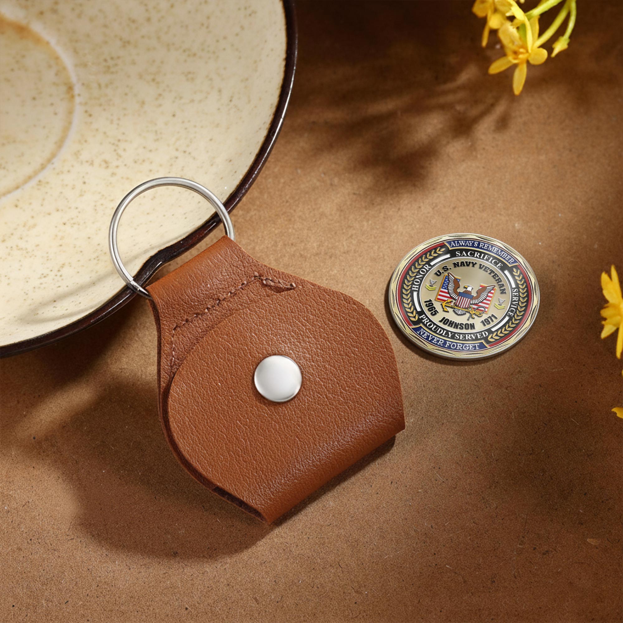 The Military Commemorative Challenge Coin showcases exceptional craftsmanship with detailed printings on both sides of solid stainless steel. Protected in a quality PU leather case with secure snap fastener, this coin honors military heritage and individual achievement.