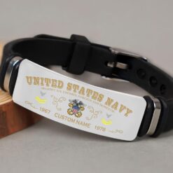 Incorporating an adaptive strap mechanism, the bracelet transcends traditional sizing limitations. It emerges as a profound tribute to veterans, symbolizing dedication, service, and the enduring spirit of patriotism.