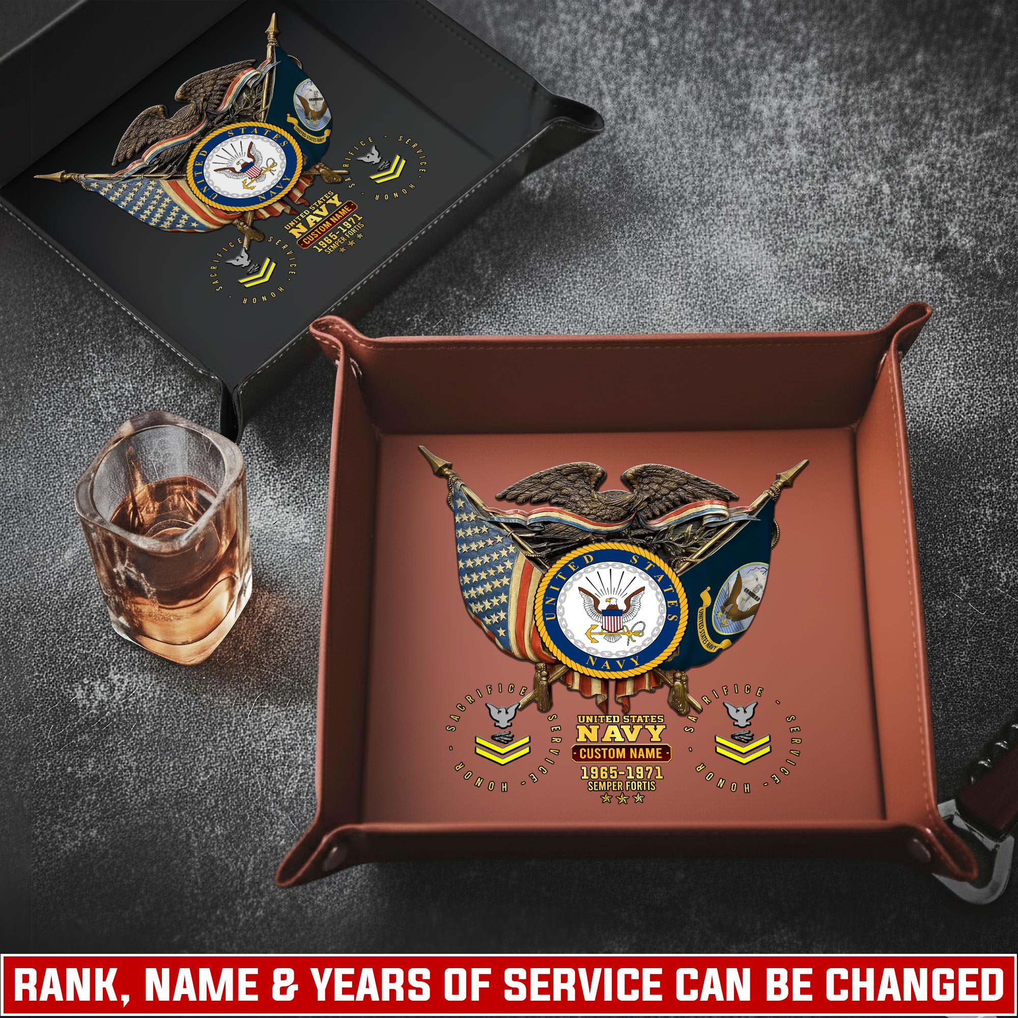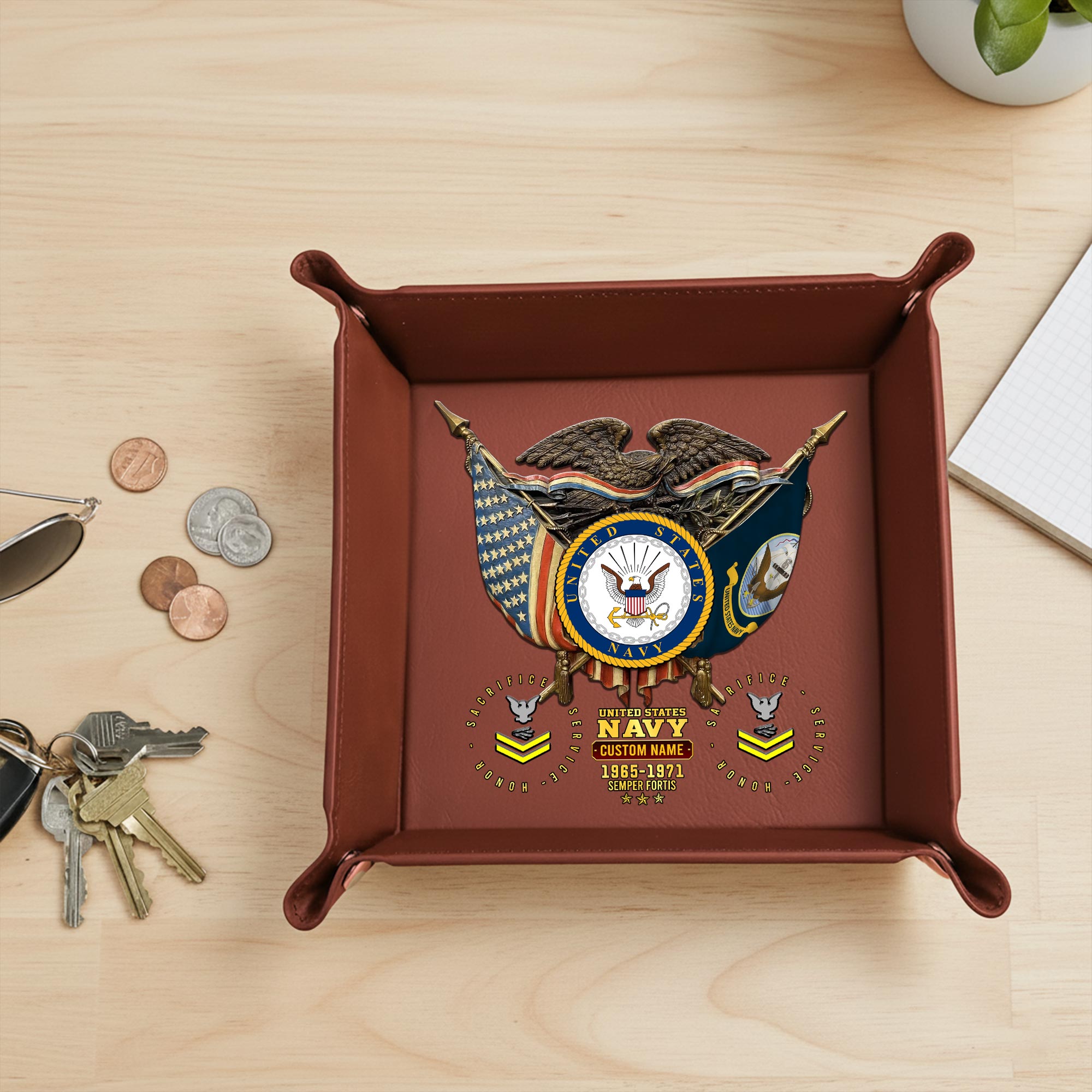 US Navy, E 7 Gold – Personalized Leather Valet Tray