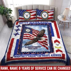 Elevate your quilt bed set with a personal touch by incorporating your custom details like name, rank, and years of service. This unique addition commemorates your military experience in a stylish and meaningful way.
