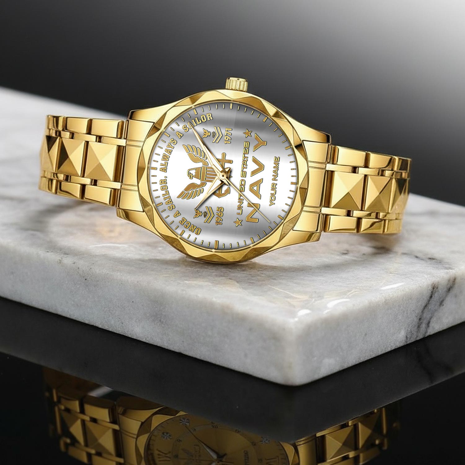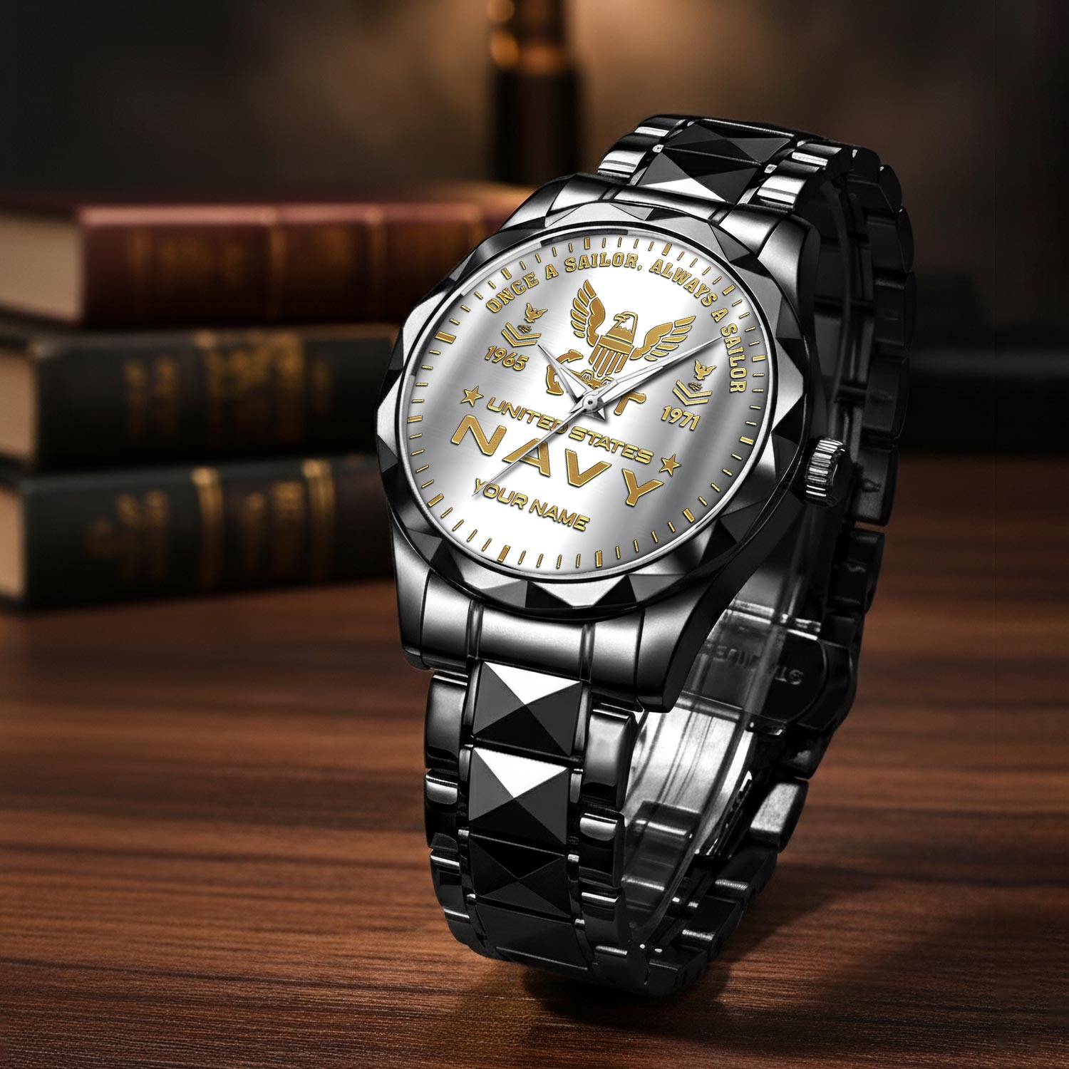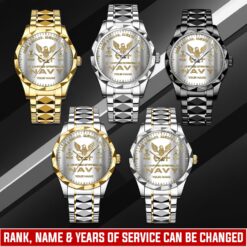 Elevate your Diamond-Cut Bezel Watch with a personal touch by incorporating your custom details like name, rank, and years of service. This unique addition commemorates your military experience in a stylish and meaningful way.