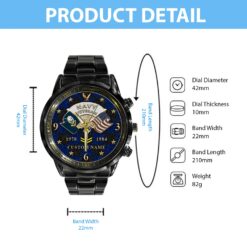 Personalize your Black Stainless Steel Watch with custom engravings of your name, rank, and years of service. This thoughtful addition transforms your watch into a cherished memento, honoring your dedication and commitment to service.