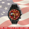 Make your Black Stainless Steel Watch a reflection of your personal journey by including custom details like your name, rank, and years of service. This personalized feature not only adds a touch of elegance but also serves as a timeless tribute to your dedicated service to our country.