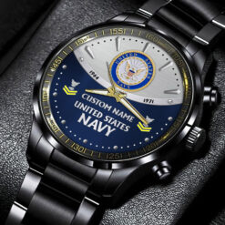 Elevate your Black Stainless Steel Watch with a personal touch by incorporating your custom details like name, rank, and years of service. This unique addition commemorates your military experience in a stylish and meaningful way.