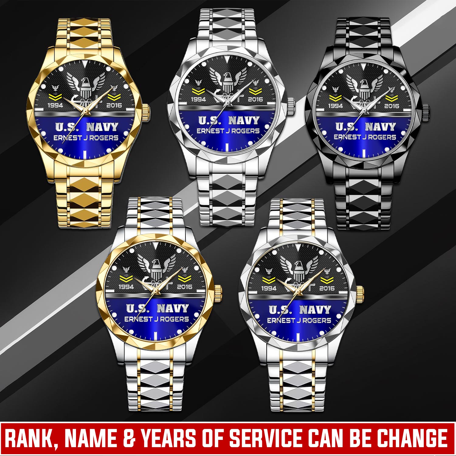Customize your Diamond-Cut Bezel Watch with your name, rank, and years of service for a truly one-of-a-kind timepiece. This personalized feature allows you to showcase your military journey with pride and distinction.
