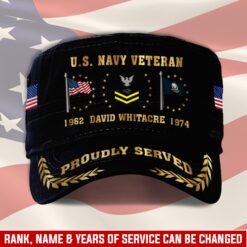 Adding personal touches like rank, name, and years of service to this cap elevates its significance, turning it into a meaningful symbol of honor and recognition.