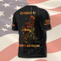 Our personalized Veteran T-shirt is a meaningful gift that carries a powerful message of respect and gratitude. It serves as a token of appreciation for the sacrifices made by our veterans, honoring their courage and dedication to protecting our freedoms. Presenting this T-shirt is a heartfelt way to express admiration and support for their service, reminding them that their efforts are deeply valued and remembered.