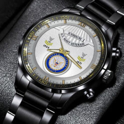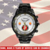 Make your Black Stainless Steel Watch uniquely yours by adding your custom information such as name, rank, and years of service. This personalized detail adds a special touch, celebrating your military journey with elegance and grace.