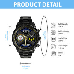 Make your Black Stainless Steel Watch a reflection of your personal journey by including custom details like your name, rank, and years of service. This personalized feature not only adds a touch of elegance but also serves as a timeless tribute to your dedicated service to our country.