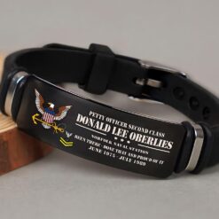 Featuring a dynamic adjustable strap, the bracelet transcends conventional sizing constraints. It emerges as a powerful symbol of veteran appreciation, embodying the profound values of service, honor, and national pride.