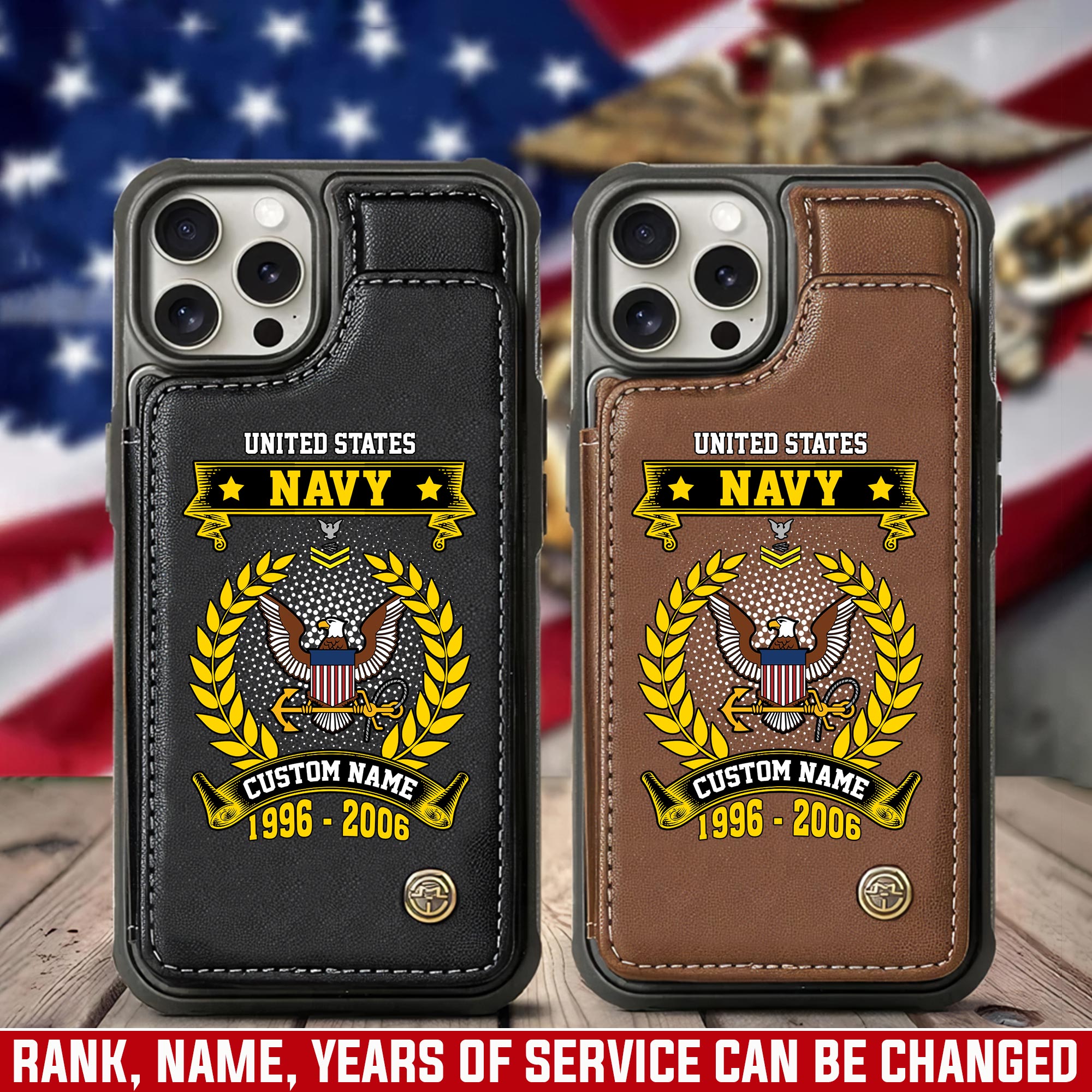 Customize your tribute with our personalized Leather Flip Phone Case. Add your name, rank, years of service, and more to create a unique item that honors your dedication.