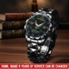 Elevate your Diamond-Cut Bezel Watch with a personal touch by incorporating your custom details like name, rank, and years of service. This unique addition commemorates your military experience in a stylish and meaningful way.