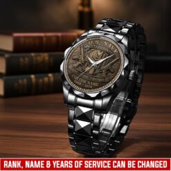 Personalize your Diamond-Cut Bezel Watch with custom engravings of your name, rank, and years of service. This thoughtful addition transforms your watch into a cherished memento, honoring your dedication and commitment to service.