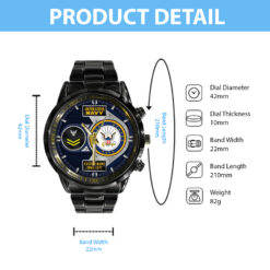Express your unwavering support and admiration for a service member or veteran in your life with our Black Stainless Steel Watch. Whether presented on Veterans Day, retirement, or any occasion honoring military service, this watch stands as a testament to their unwavering dedication and is sure to be treasured for years to come.