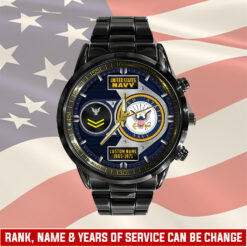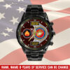 Elevate your Black Stainless Steel Watch with a personal touch by incorporating your custom details like name, rank, and years of service. This unique addition commemorates your military experience in a stylish and meaningful way.