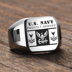 You’re enabled to customize your name, rank, rating, etc. to have them printed on the personalized engraved men’s ring. Create a unique piece that reflects your military journey and personal achievements.