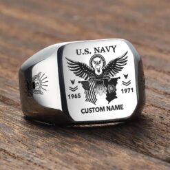 You’re enabled to customize your name, rank, rating, etc. to have them printed on the personalized engraved men’s ring. Create a unique piece that reflects your military journey and personal achievements.