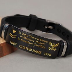 Designed with versatility in mind, the adjustable strap ensures universal adaptability across different wrist sizes. More than a simple accessory, this bracelet stands as a powerful symbol of veteran appreciation, honoring courage and sacrifice.