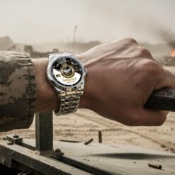 Built for practical veterans and active individuals, this watch features water-resistant capabilities suitable for routine hand-washing and face washing scenarios. The innovative scratch-resistant and anti-fog mirror ensures unobstructed time viewing in various conditions, combining protective durability with functional clarity for a timepiece that performs as impressively as it looks.