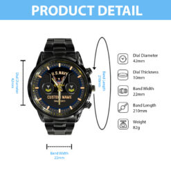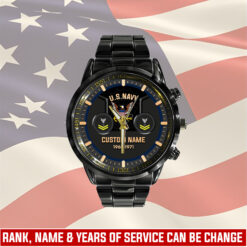 Customize your Black Stainless Steel Watch with your name, rank, and years of service for a truly one-of-a-kind timepiece. This personalized feature allows you to showcase your military journey with pride and distinction.