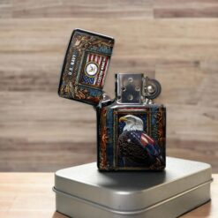 Featuring a robust iron shell with an internal stainless steel liner, this veteran lighter combines functionality with lasting tribute.
