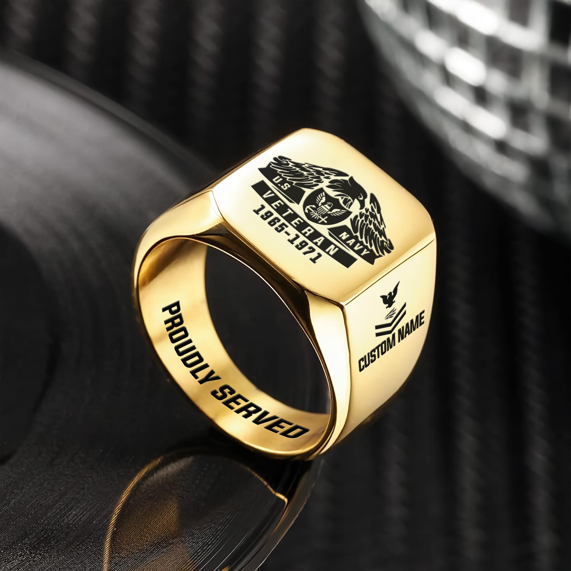 You’re enabled to customize your name, rank, rating, etc. to have them printed on the personalized engraved men’s ring. Make it uniquely yours by incorporating elements that celebrate your military identity and legacy.