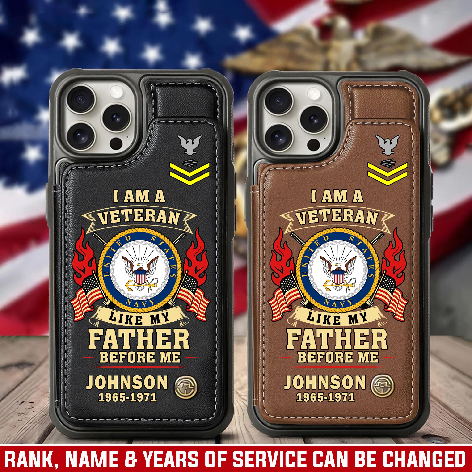 Add Your Personal Touches: you’re enabled to customize your name, rank, rating, etc. to have them printed on the personalized Leather Flip Phone Case.
