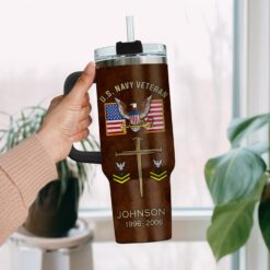 Add a special touch to your tumbler with our personalized options, perfect for commemorating the service of veterans with custom ranks, names, and more.