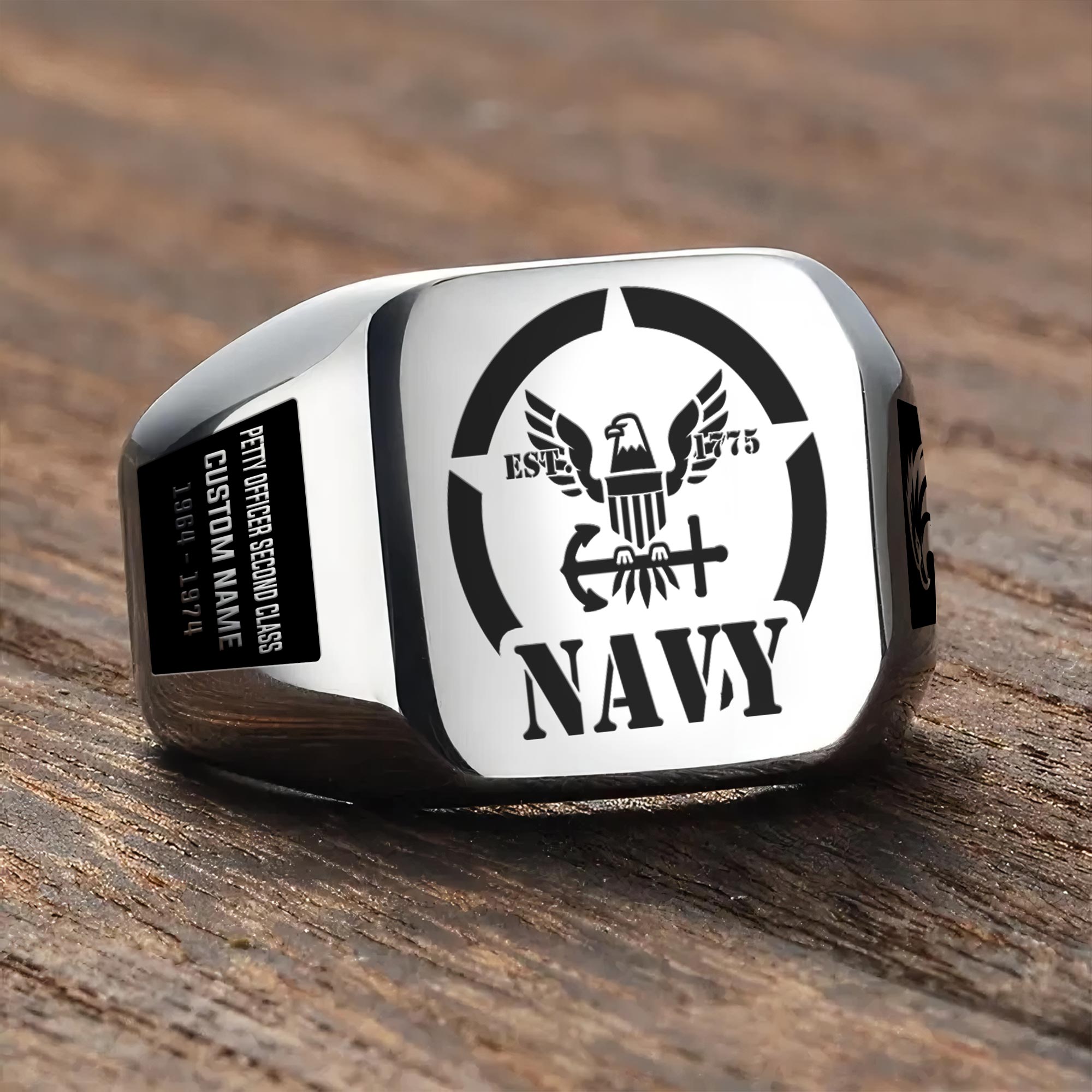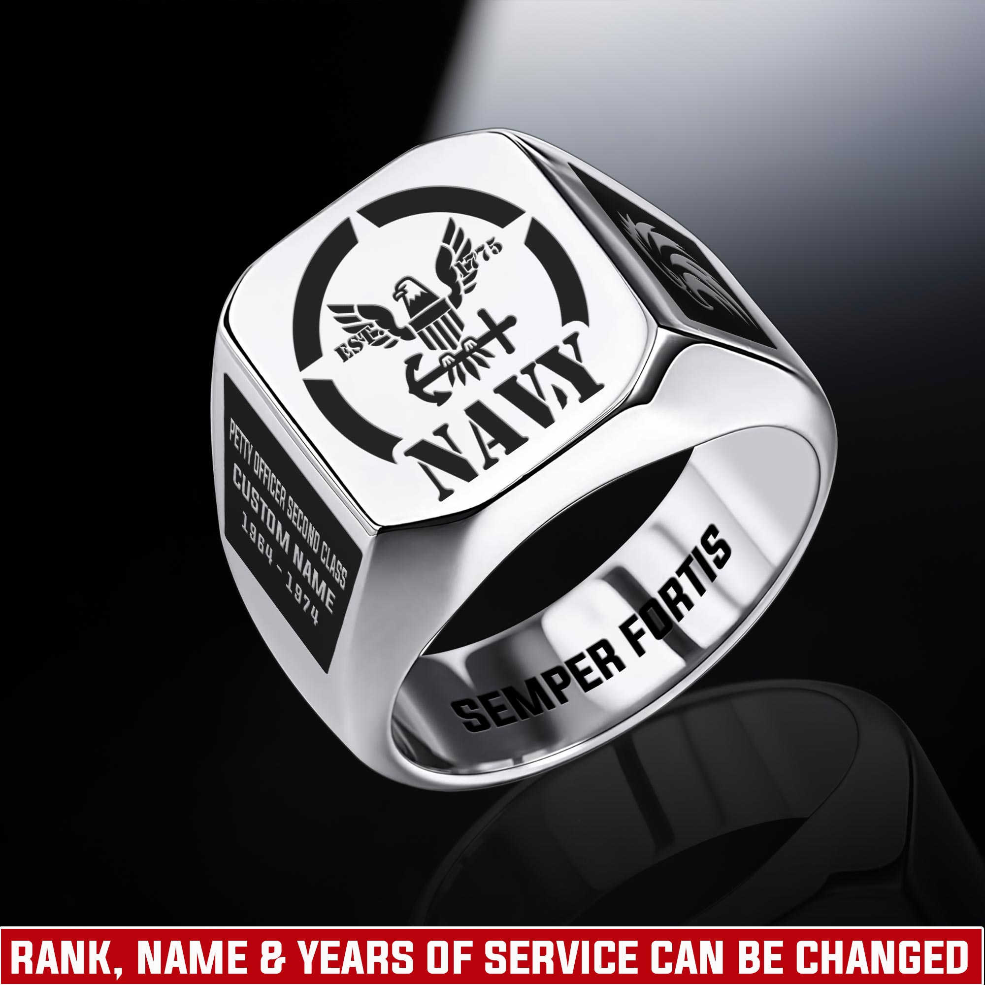 You’re enabled to customize your name, rank, rating, etc. to have them printed on the personalized engraved men’s ring. Create a unique piece that reflects your military journey and personal achievements.