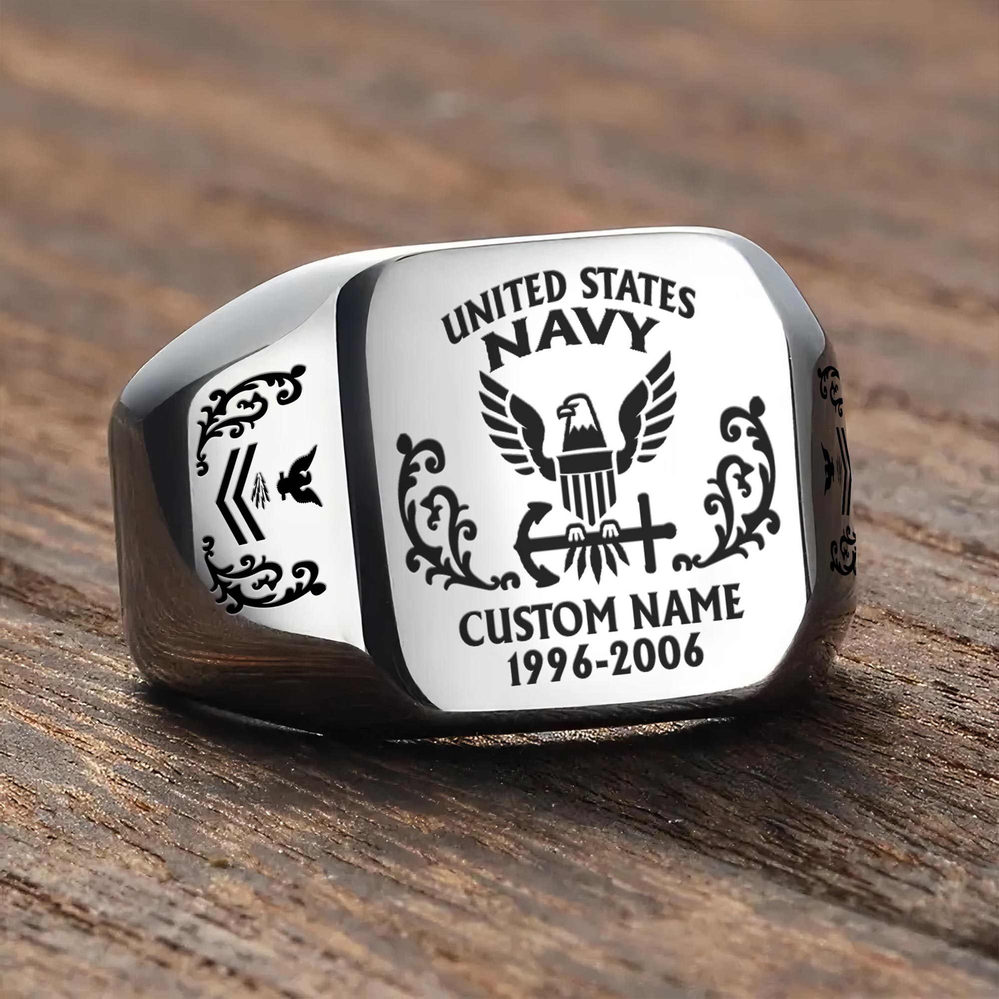 US Navy, Proud Veteran – Engraved Men’s Ring