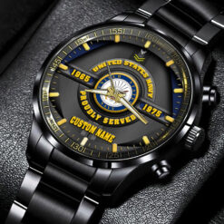 Personalize your Black Stainless Steel Watch with custom engravings of your name, rank, and years of service. This thoughtful addition transforms your watch into a cherished memento, honoring your dedication and commitment to service.