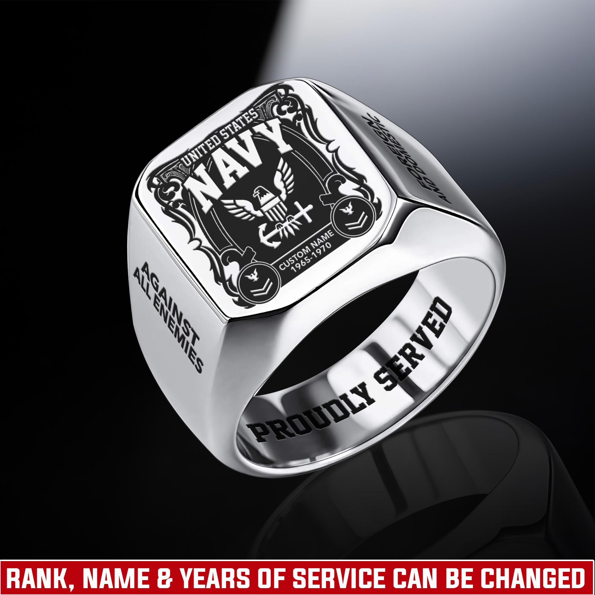 You’re enabled to customize your name, rank, rating, etc. to have them printed on the personalized engraved men’s ring. Craft a distinctive piece that permanently captures your military story and personal milestones.