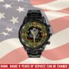 Make your Black Stainless Steel Watch uniquely yours by adding your custom information such as name, rank, and years of service. This personalized detail adds a special touch, celebrating your military journey with elegance and grace.