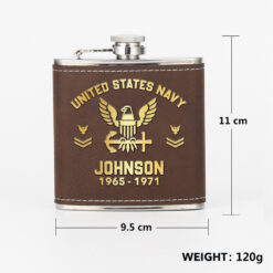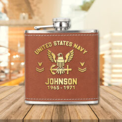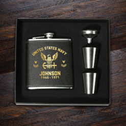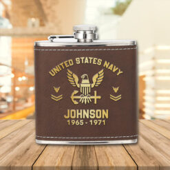 Elevate your flask with a personal touch by incorporating your custom details like name, rank, and years of service. This unique addition commemorates your military experience in a stylish and meaningful way.
