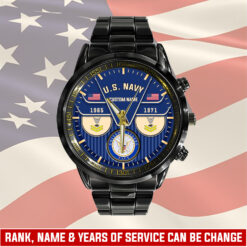 Make your Black Stainless Steel Watch uniquely yours by adding your custom information such as name, rank, and years of service. This personalized detail adds a special touch, celebrating your military journey with elegance and grace.