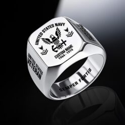 You’re enabled to customize your name, rank, rating, etc. to have them printed on the personalized engraved men’s ring. Make it uniquely yours by incorporating elements that celebrate your military identity and legacy.