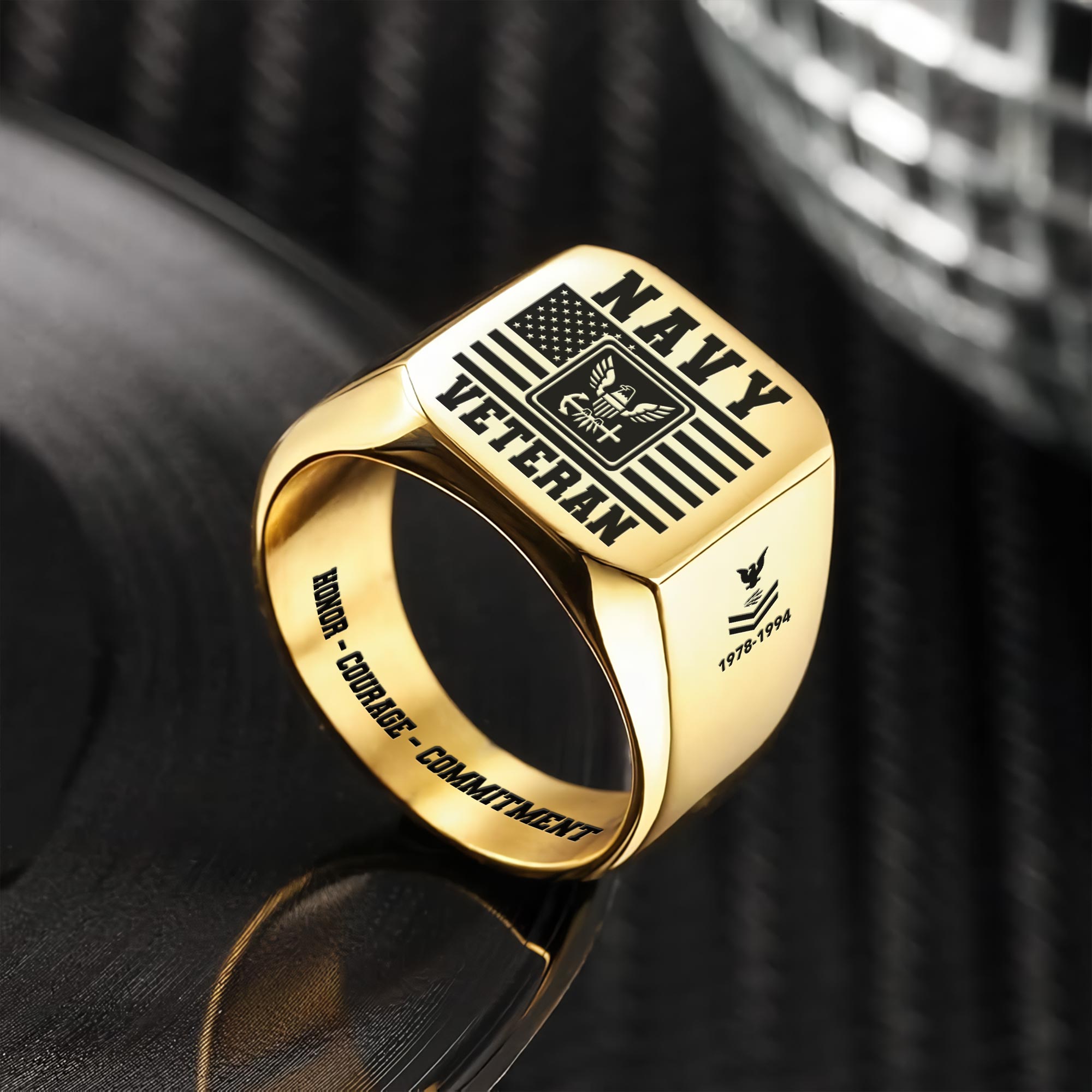 You’re enabled to customize your name, rank, rating, etc. to have them printed on the personalized engraved men’s ring. Personalize this meaningful piece to showcase your military credentials and cherished memories.